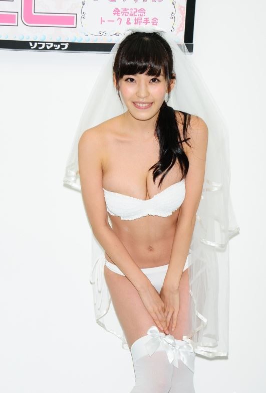 グラビアアイドル清水みさとのウエディングドレスのようなニーソックスに白ビキニ水着画像