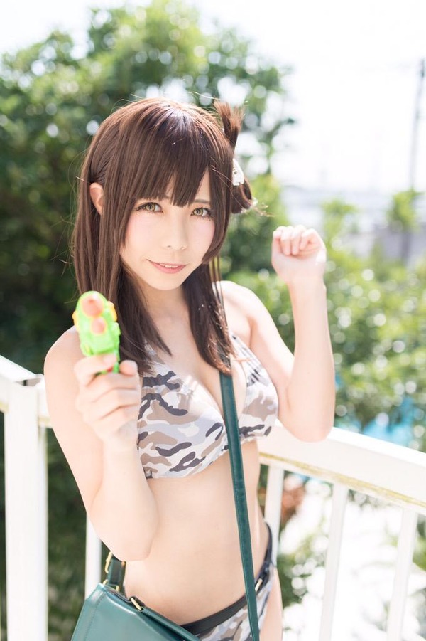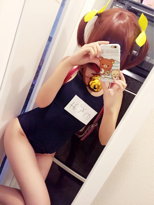 獣耳をつけたコスプレイヤーの透け透け白スクール水着エロ画像